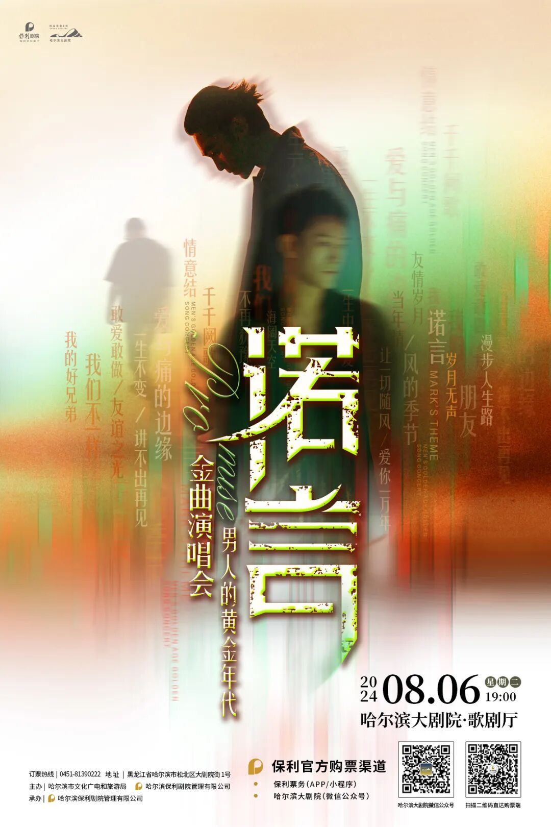 当《诺言》这首时代金曲重新响起忆起的是那一个个意气风发的少年回味的是那一段段不可复制的记忆8月6日 19:00在哈尔滨大剧院歌剧厅《从诺言到友情岁月——男人的黄金时代》金曲演唱会与回音墙乐队重温经典找到那份属于自己的感动与共鸣
