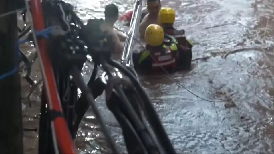 当地上千户商铺和居民房屋被洪水吞噬,部分居民被困家中,当地展开紧急救援(中新视频|视频截图)