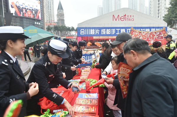 2月7日,南岸区茶园奥园广场的“平安春运”新春游园活动现场弥漫着浓厚的新春年味。在活动现场,交巡警民警现场宣讲春运安全知识和普法,网安支队民警结合打击网络谣言专项整治和“净网2024”专项行动向群众进行法治宣传。